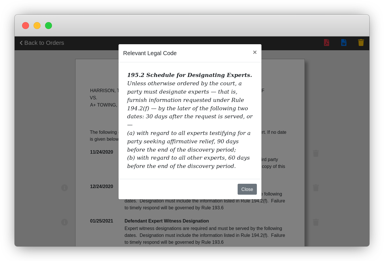 Quickly and simply edit language in real time. Any changes to rule-triggering dates will alert you as to which deadlines will be recalculated. You can remove any deadlines not relevant to a particular case, and even save templates unique to your firm.